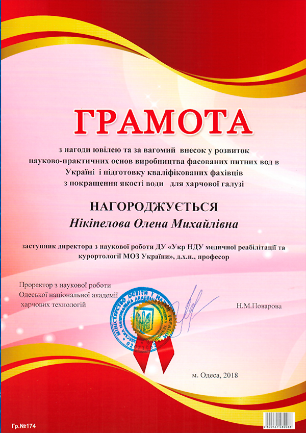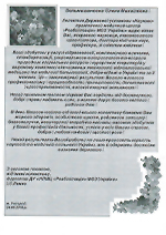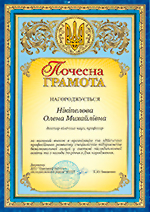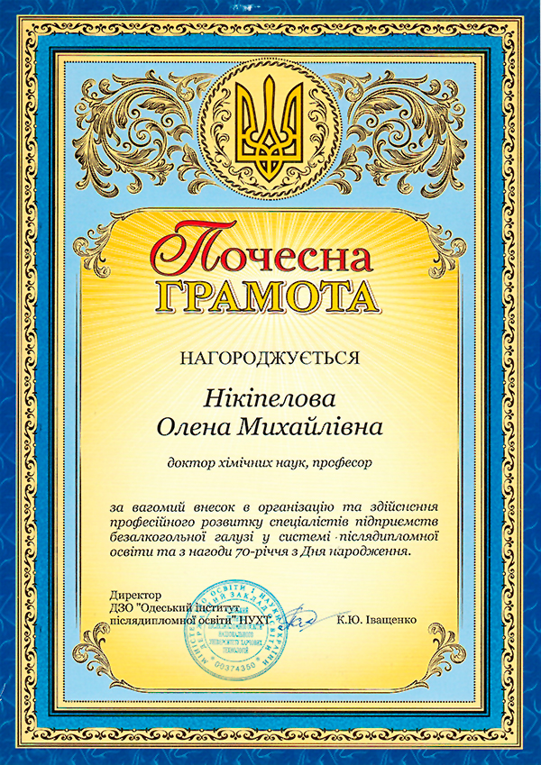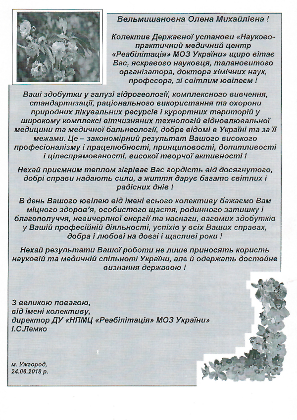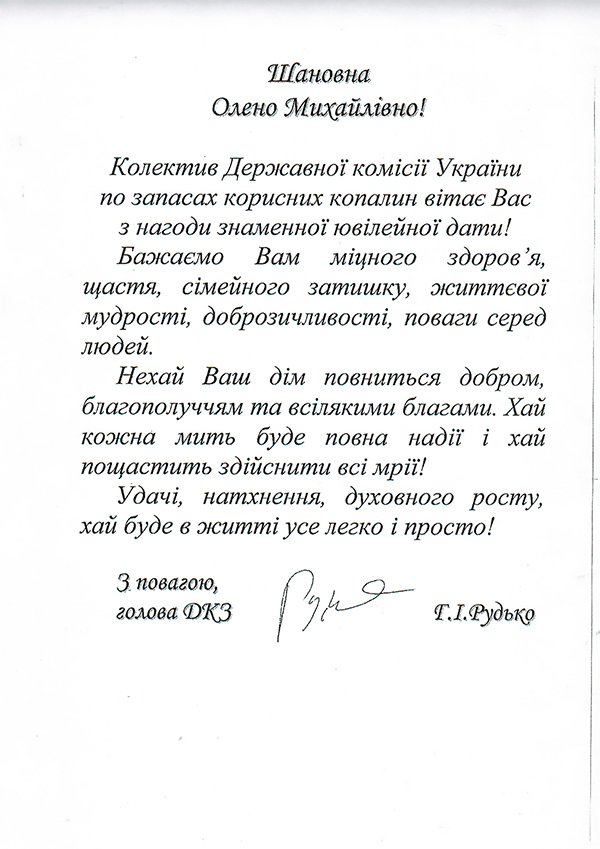 Ваша багатогранна діяльність заснована на високому професіоналізмі та порядності, чуйному ставленні до людей, однак шанобливе ставлення до колег по роботі не заважає Вам бути вимогливою та принциповою, домагатися логічного та успішного вирішення поставлених перед інститутом завдань.