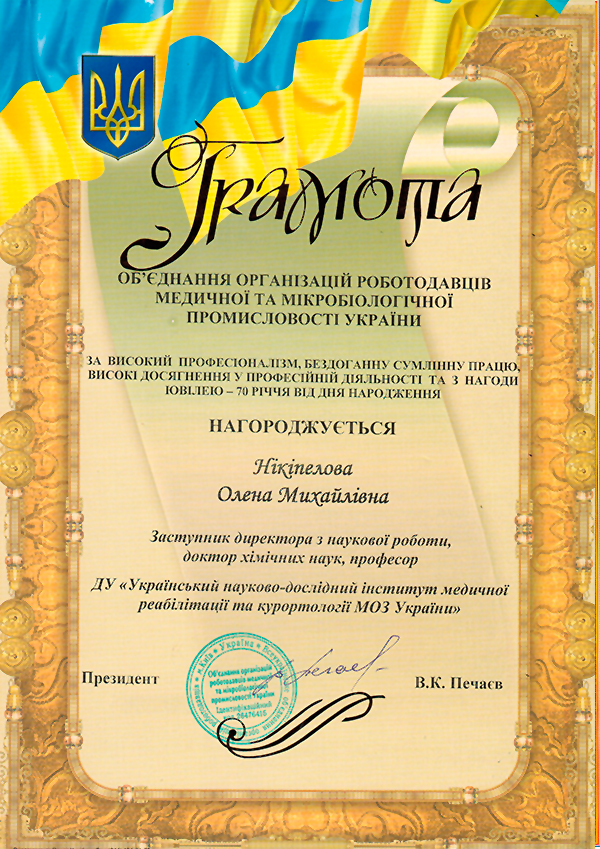 70 років – вік зрілості та мудрості. 45 з них Ви віддали рідному інституту. Спочатку – лаборант з вищою освітою, потім – молодший - старший - провідний науковий співробітник - керівник Українського державного центру стандартизації і контролю якості природних і преформованих засобів та вже 3 роки займаєте посаду заступника директора з наукової роботи.