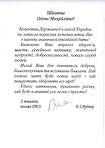Ваші відмінні якості: вміння знаходити спільну мову з людьми, вирішувати численні проблеми, чуйно вловлювати життєві зміни, сприймати нове і втілювати це нове в життя - здобули Вам заслужену повагу колег.