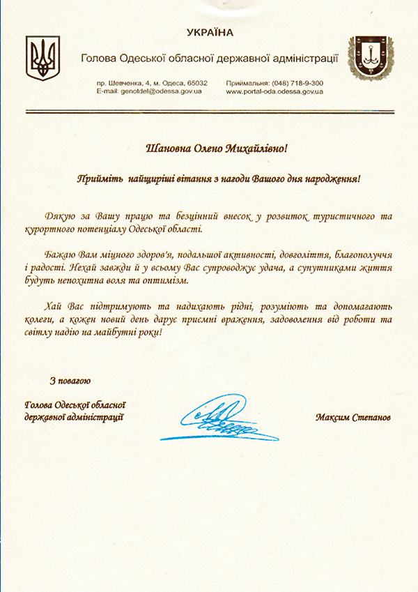 Нехай наступні роки будуть для Вас роками здійснення всіх добрих задумів, бажань та заповітних мрій, а всі Ваші починання супроводжує надія, віра, вдача, оптимізм та успіх!
